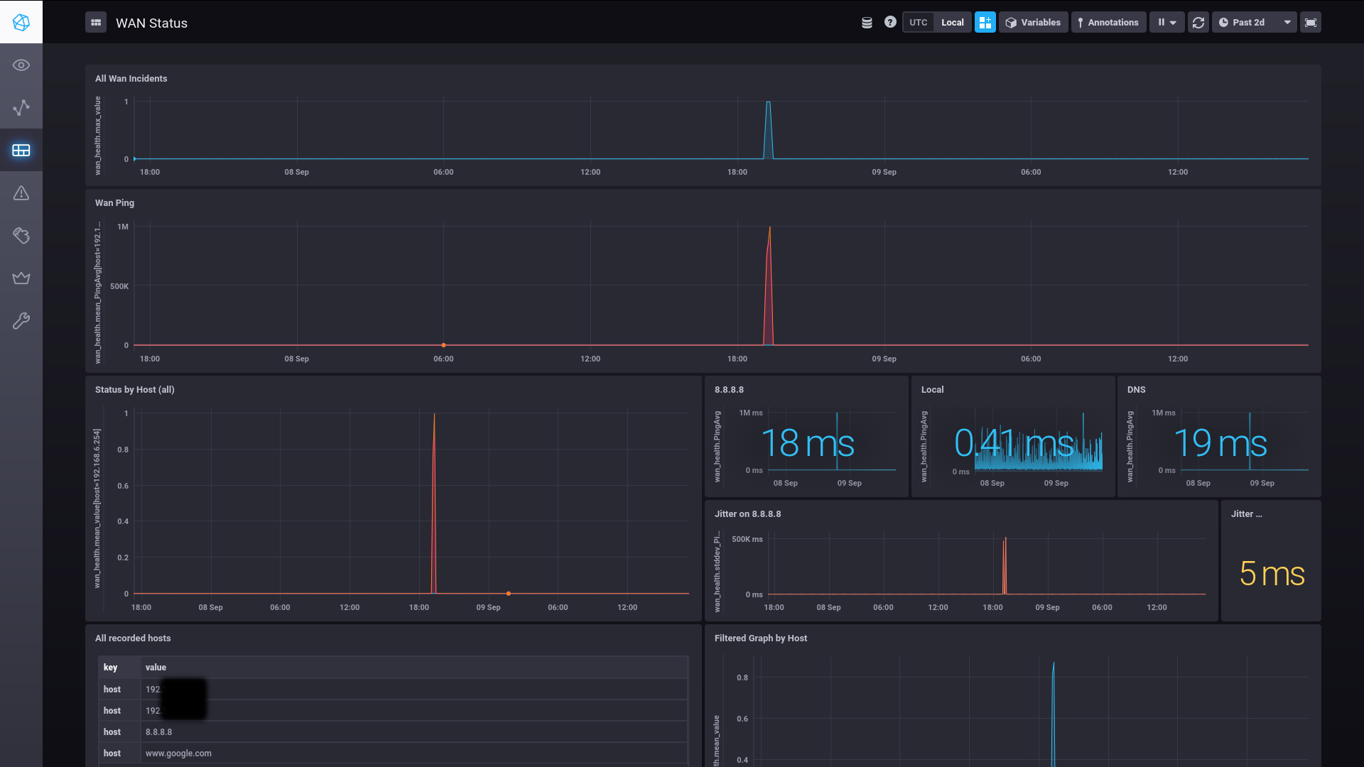 I enjoy tinkering with electronic, servers, and any technology I can get my hands on. I bundle these hobbies under the title of homelab. It includes things such as my DIY home security center, network monitoring (image on the left), Nextcloud, commute alerting, this resume website and much more. All these services run using a mix of on and off prem hardware as well as technologies such as Docker, Linux, ZFS, and AWS.